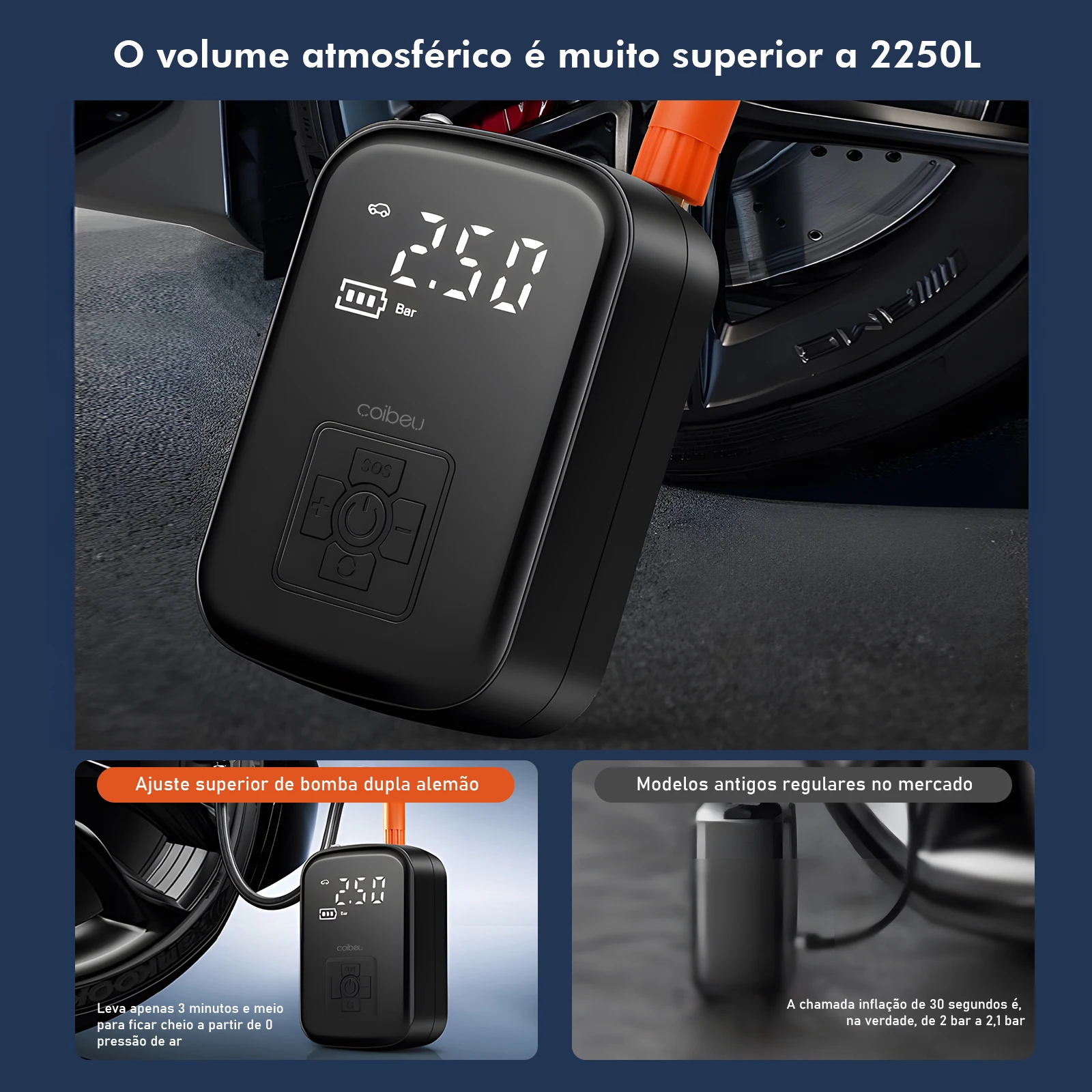 Potência e Eficiência: Com uma potência nominal de 120W e um fluxo de ar máximo de 15A, esta bomba inflável oferece desempenho rápido e eficiente para encher pneus de carros, bicicletas e outros equipamentos.