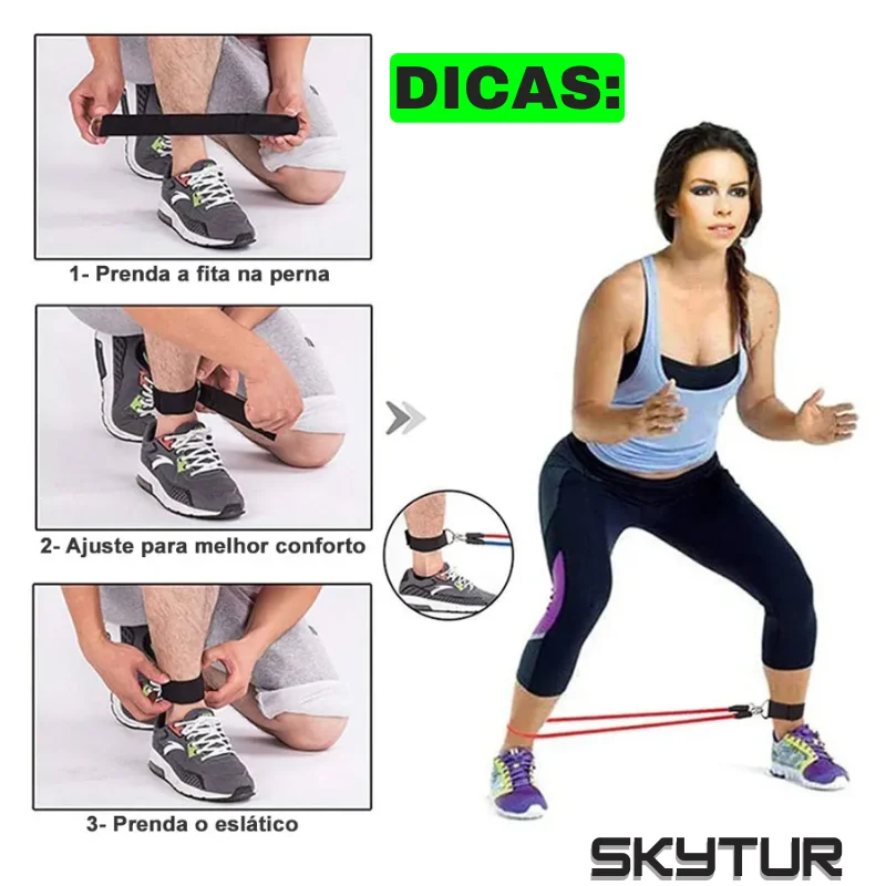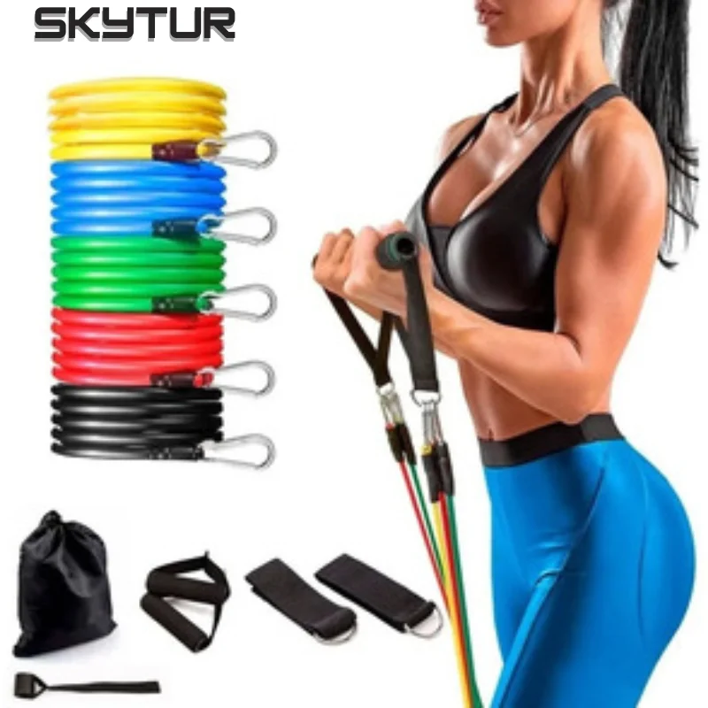 SKYTUR-Kit de Elásticos Extensores 11 Itens p/ Exercícios/Musculação/Academia/Funcional Em Casa-ENVIO IMEDIATO PARA TODO BRASIL